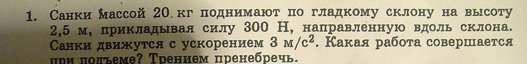 дано m=20 кг Fтяг=300 Н h=2,5 м a=3 м/с2