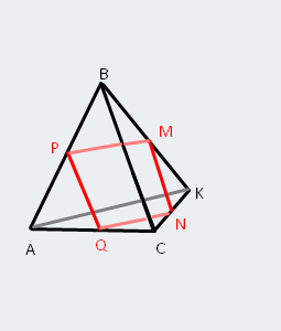 Точка К не принадлежит плоскости треугольника АВС. Точки М, N, P, Q - середины отрезков КВ, КС, АВ, АС соответственно. АК=18см, ВС=24см. Найти периметр четырехугольника МNQP.