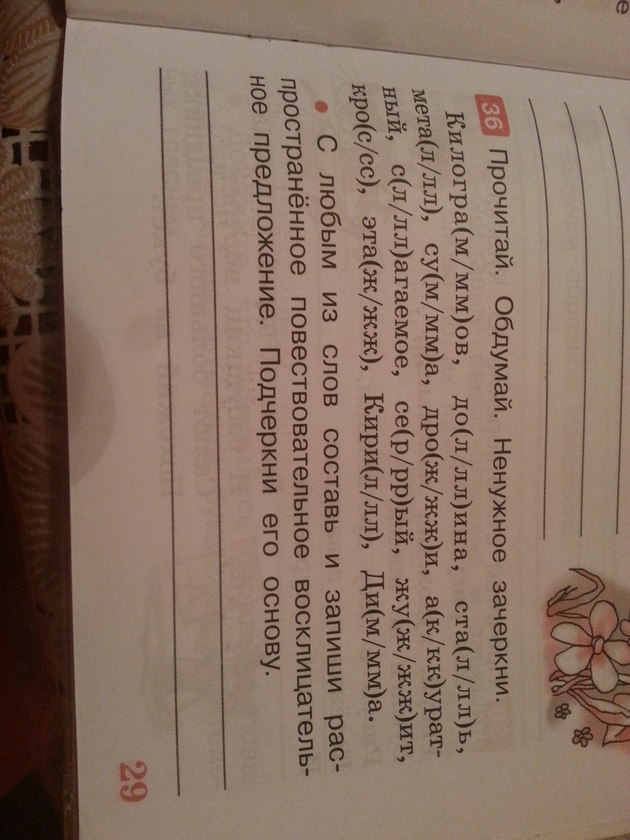 С любым из слов составь и запиши распространенное повествовательное восклицательное предложение.Подчеркни его основу