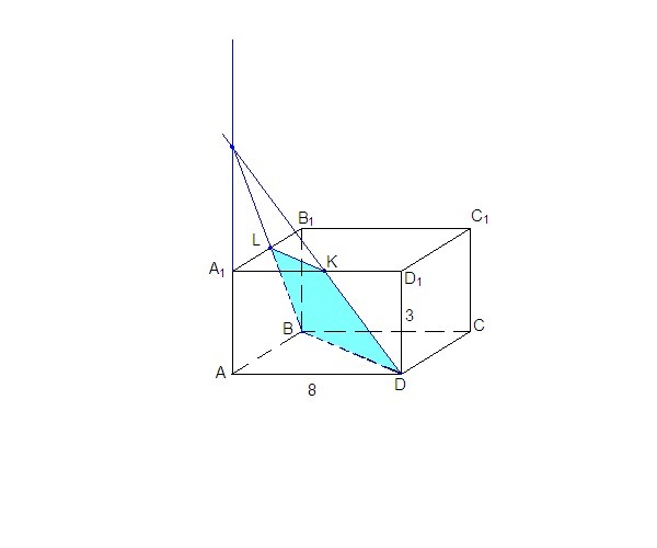 В ПАРАЛЛЕЛЕПИПЕДЕ abcda1b1c1d1 ОСНОВАНИЕ abcd - КВАДРАТ СО СТОРОНОЙ, РАВНОЙ 8. остальные грани- прямоугольники. боковое ребро равно 3. k - СЕРЕДИНА a1d1. ПОСТРОЙТЕ СЕЧЕНИЕ ПАРАЛЛЕЛЕПИПЕДА ПЛОСКОСТЬЮ ПРОХОДЯЩЕЙ ЧЕРЕЗ ТОЧКИ b,d,k И НАЙДИТЕ ПЕРЕМЕТР СЕЧЕНИЯ. рисунок!!!!