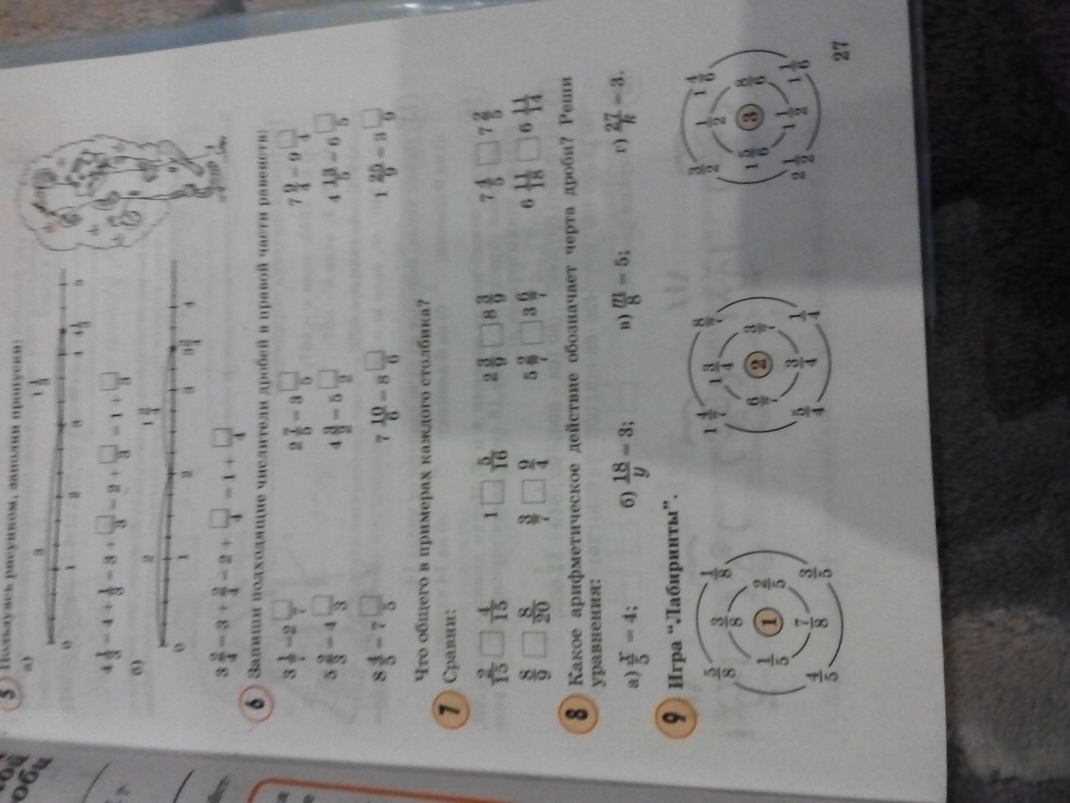 2/15 < 4/15 , 1>5/16 , 2 3/9 < 8 3/9 , 7 4/(5 или 6 , не видно) > 7 2/(5 или 6 , не видно) , 8/9 > 8/20 , 3/7 < 9/4 , 5 2/7 > 3 6/7 , 6 11/18 < 6 11/14 .