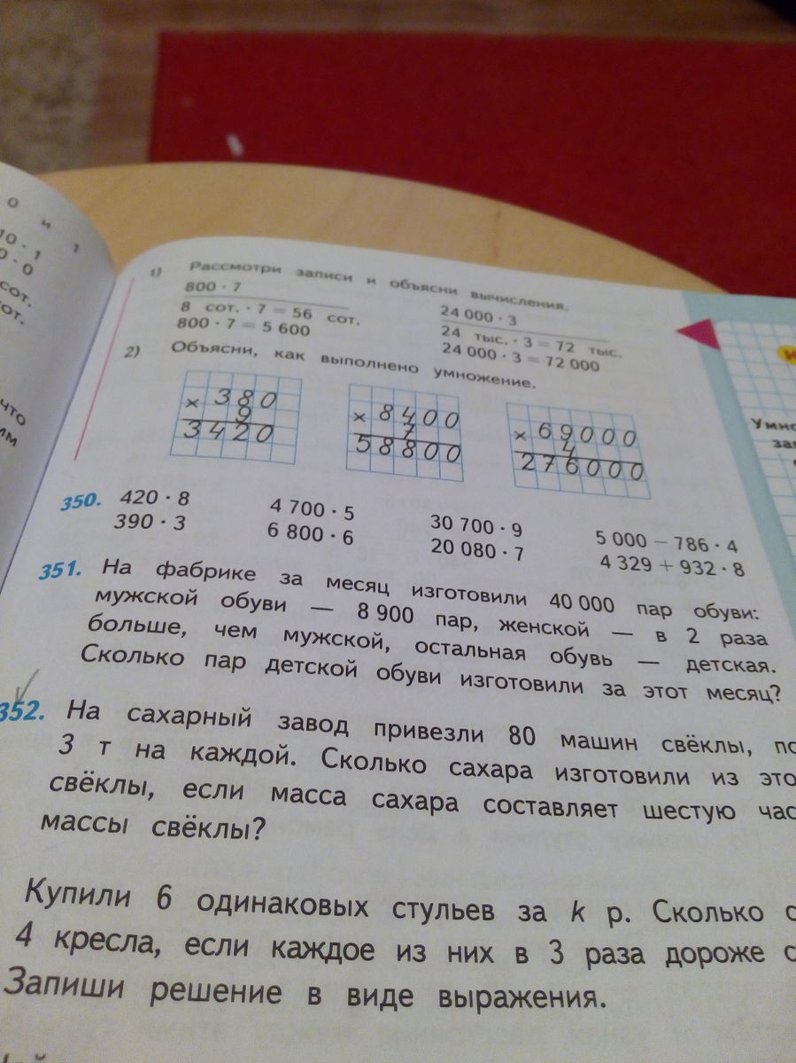 Ответы: 420*8=3360 390*3=1170 4700*5=23500 6800*6=40800 30700*9=276300 20080*7=140560 5000-786*4=1856 4329+932*8=11785