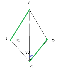 Докажите равенство треугольников ABC и ADC с общей стороной AC,если AB=DC и угол BAC= углу DCA. Найти углы ACB и ADC если уголABC=102 градуса угол BCA=38 градусов