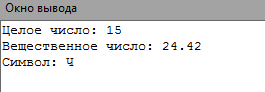 Напишите программу в среде PascalABC.NET и пришлите исходный файл (файл с расширением *.pas, в котором будет находиться программа, набранная в текстовом редакторе компилятора, которая выводит на экран любое целое и вещественное число, символ).