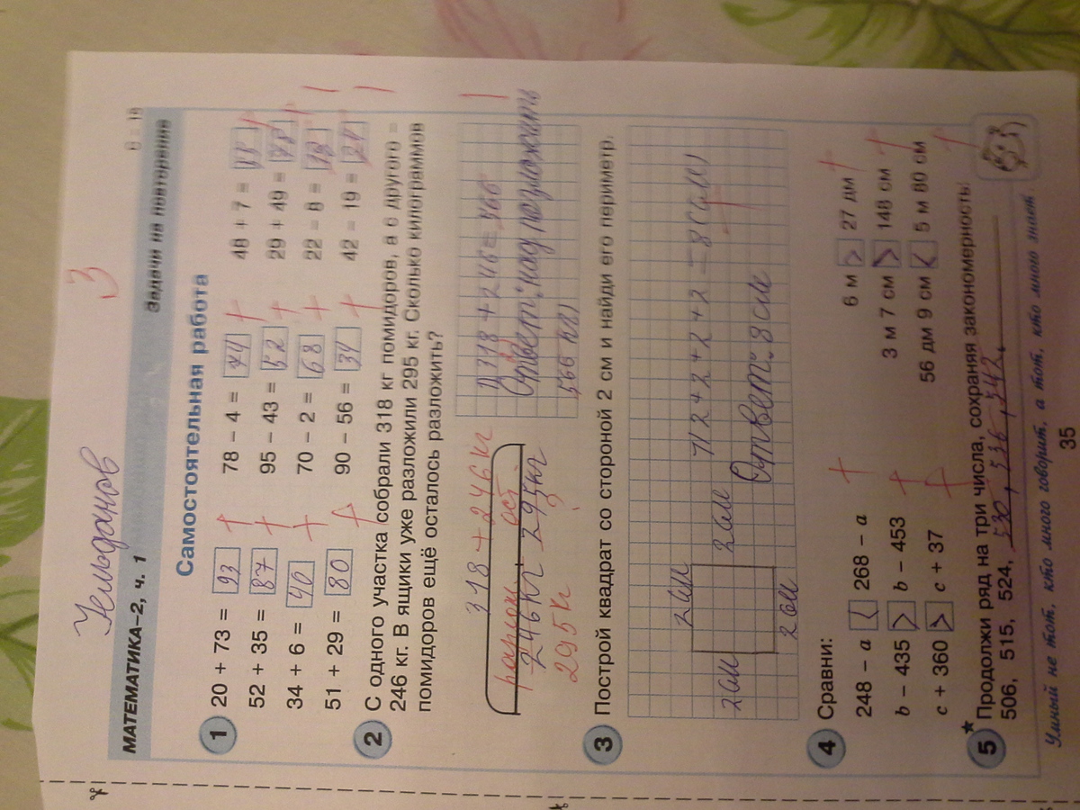 1) 318+246=564 (кг)-помидор собрали с двух участков