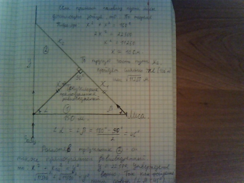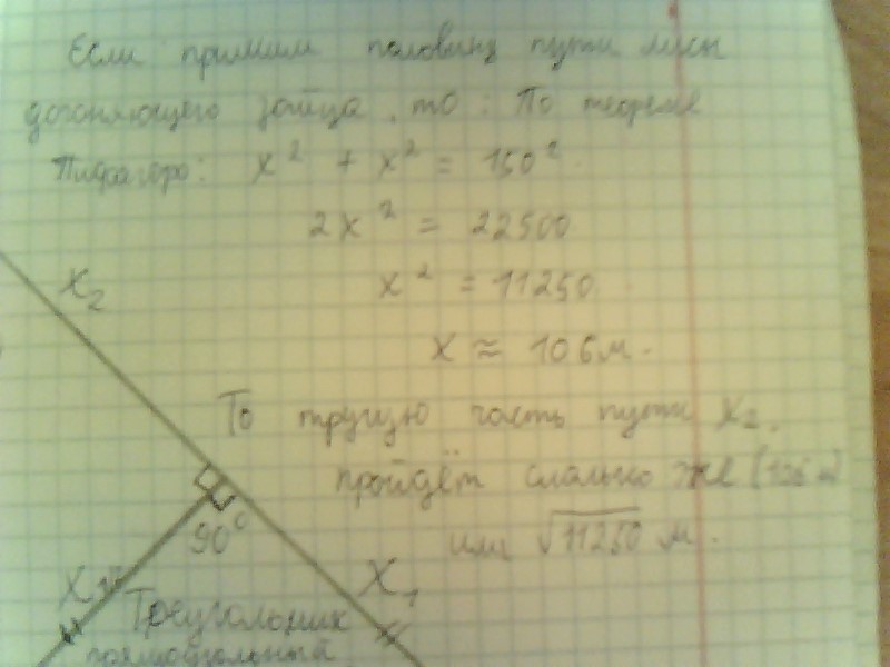 по теореме Пифагора: (10х)^2+150^2=(15x)^2 (x-время)
