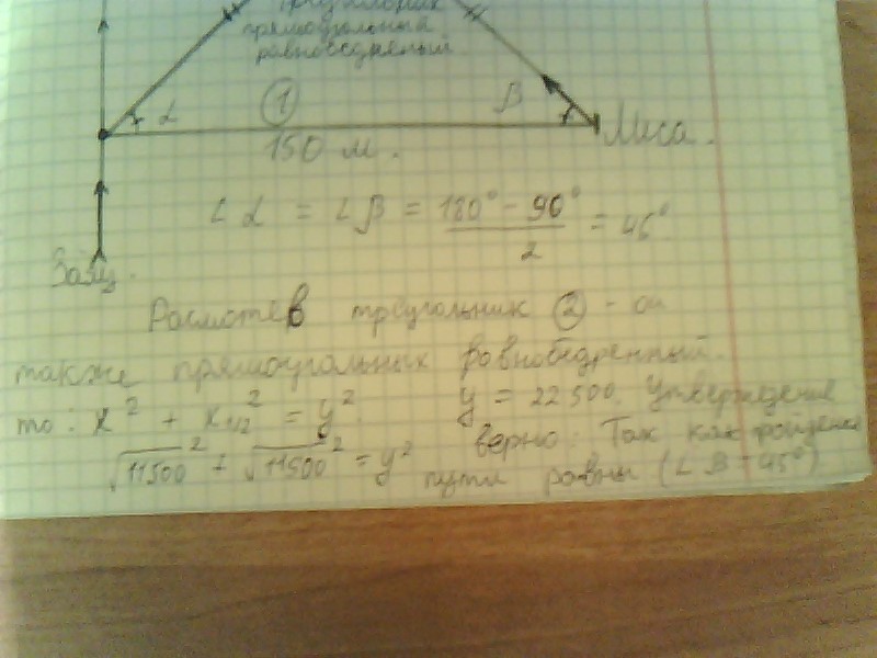 Заяц бежит вдоль прямой со скоростью 10 м/с. Его замечает лиса, когда расстояние между ними 150 м, при этом лиса смотрит в начальный момент перпендикулярно движению зайца. Под каким углом, относительно своего начального положения должна двигаться лиса со скоростью 15 м/с, чтобы догнать зайца?