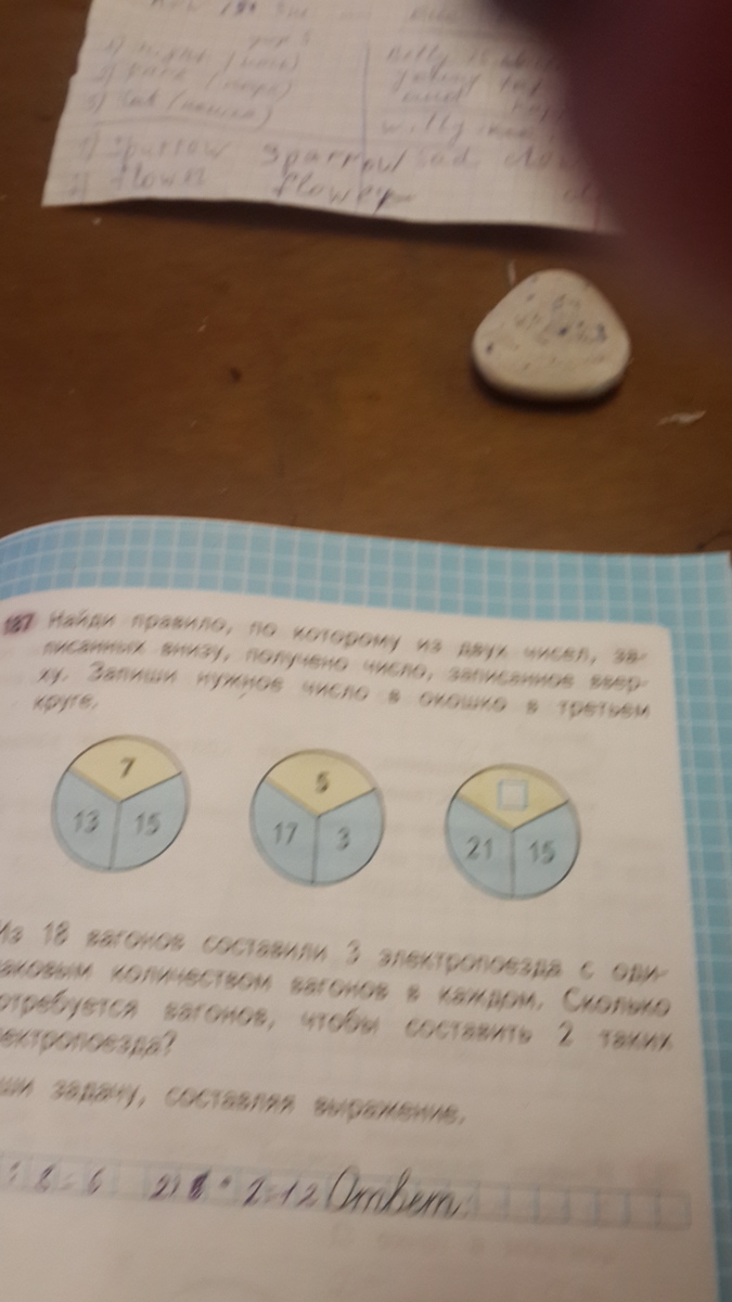 Нижние числа складываются и делятся на 4 , ответ записывают наверх