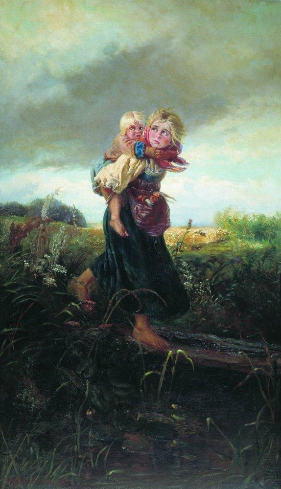 Выбившаяся из сил девочка, не глядя под ноги, уверенно несла своего братца от преследовавшей их грозы.