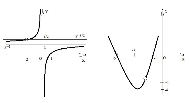 Но у графика будет устранимый разрыв в точке x = -2; y(-2) = 1 - 1/(-2) = 1+1/2 = 3/2