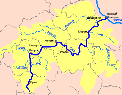 Возле слияния с рекой Проней Ока, делая излучину, поворачивает направо, а после слияния с рекой Парой опять течет на север, и, делая возле Касимова заметную большую излучину, продолжает течь на север, где на территории Ермишинского района в неё впадает река Мокша.