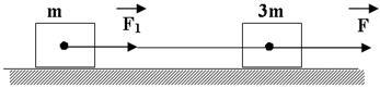 : Определить величину силы F, действующей на тело массой 3m, если на тело массой m, связанное с ним нитью действует сила натяжения F1 =30Н