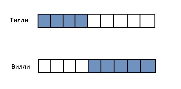 По условию задачи Вилли использовал столько, сколько осталось у Тилли = 5 кусков.