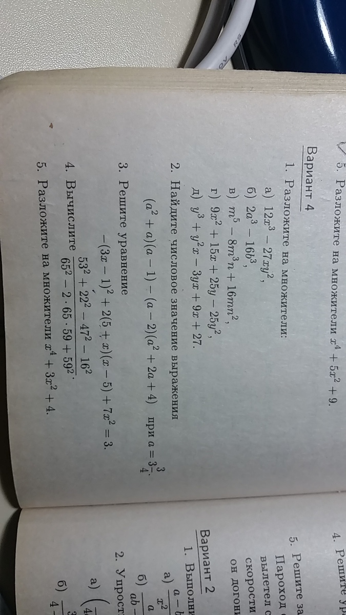 1.а) 12х^3 - 27ху^2=3х (4х^2 - 9у^2)=3х (2х-3у)(2х+3у)