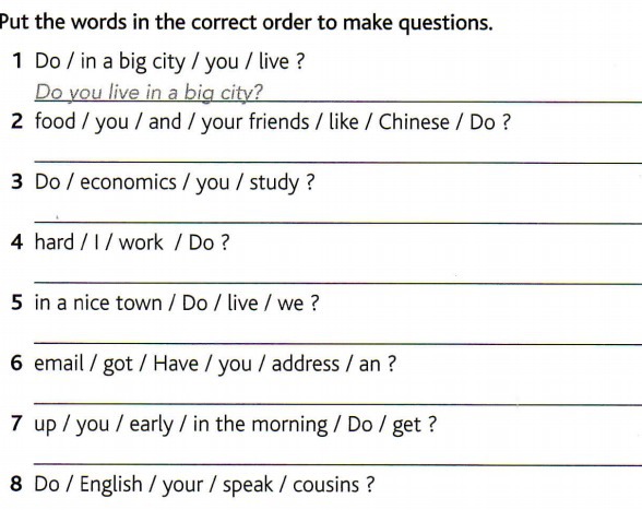 Do you like food and chinese your frinds 3.Do you economics stydy 4.