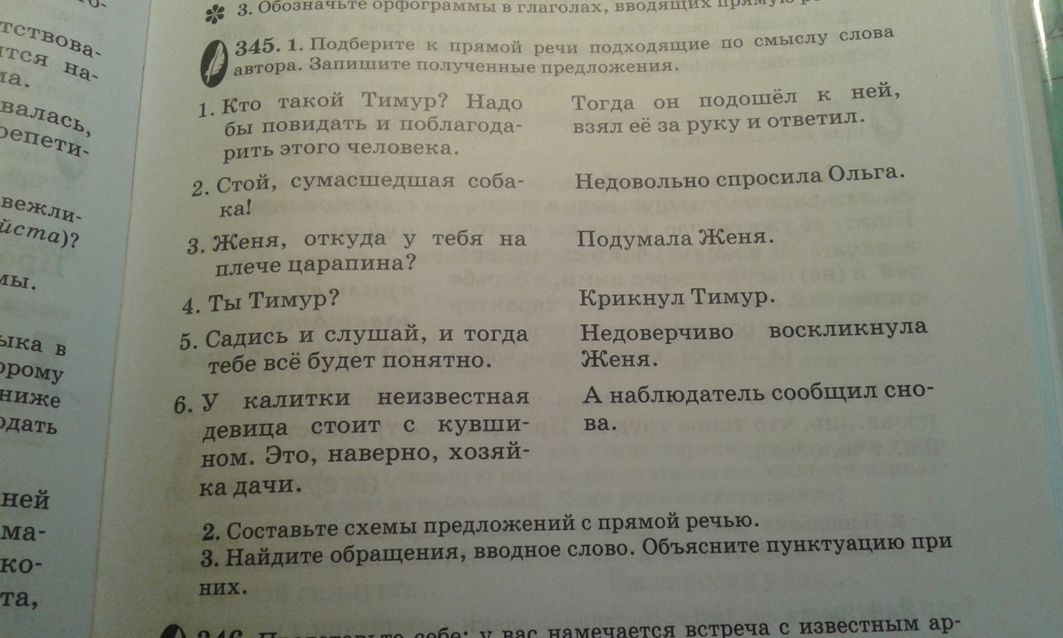 3. "Женя, откуда у тебя на плече царапина?" - недовольно спросила Ольга.