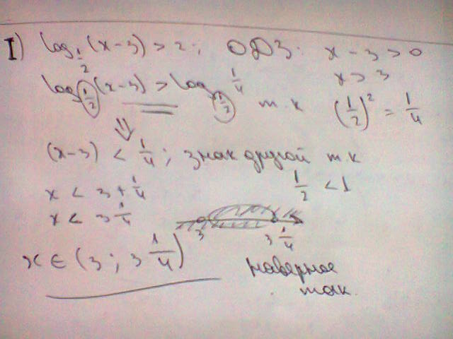 1)помогите решить неравенство логарифм по основанию одна вторая (x−3)>2