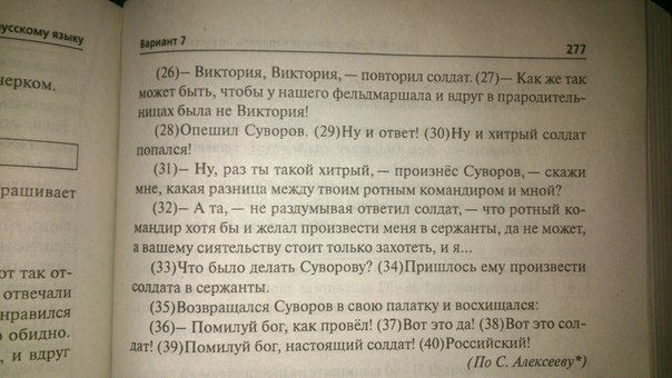 "Помилуй бог, как провёл! Вот это да! Вот это солдат! Помилуй бог, настоящий солдат! Российский!"-эти слова Алексеева я понимаю так: Солдат храбрый, умный и хитрый. Чтобы подтвердить сказанное, обратимся к предложению 4, Суворов очень удивился ответу солдата, потому что солдат поступил хитро, но ему понравилось. Подтвердить данный аргумент можно еще и примером из предложения 13, солдат снова схитрил и начал считать звезды. Исходя из всего вышесказанного можно сказать, что солдатам нужно быть не только сильными, но и с чувством юмора.