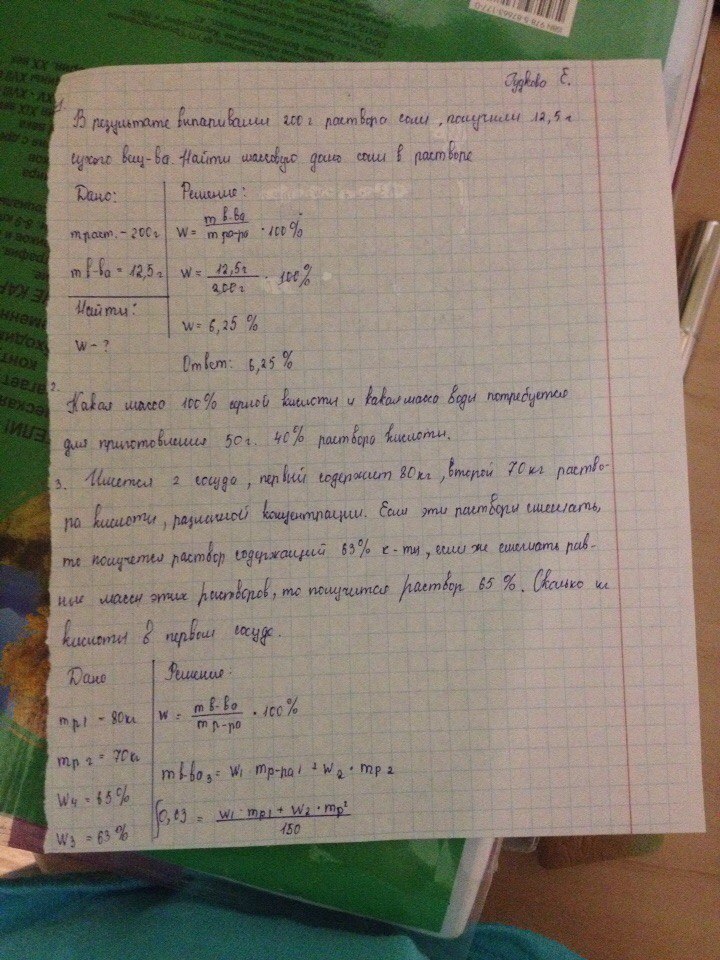 Составим уравнения за х принимаем концентрацию в первом сосуде, за у --во втором. 80х+70у/70+80=0,63 предлоложим ,что смешали по 50 кг растворов 50х+50у/100=0,65 у=65-50х/50 подставляем в первое уравнение и получаем х=0,35 у=0,95 отсюда m кислоты=80х0,35=28 кг