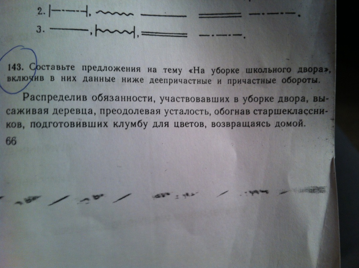 Составьте предложение на тему " На уборке школьного двора, включив в них данные ниже деепричастные и причастные обороты.