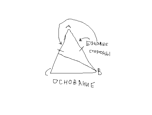 Равнобедренный треугольник это такой треугольник у которого две стороны равны эти стороны называются боковыми, а третья сторона основание