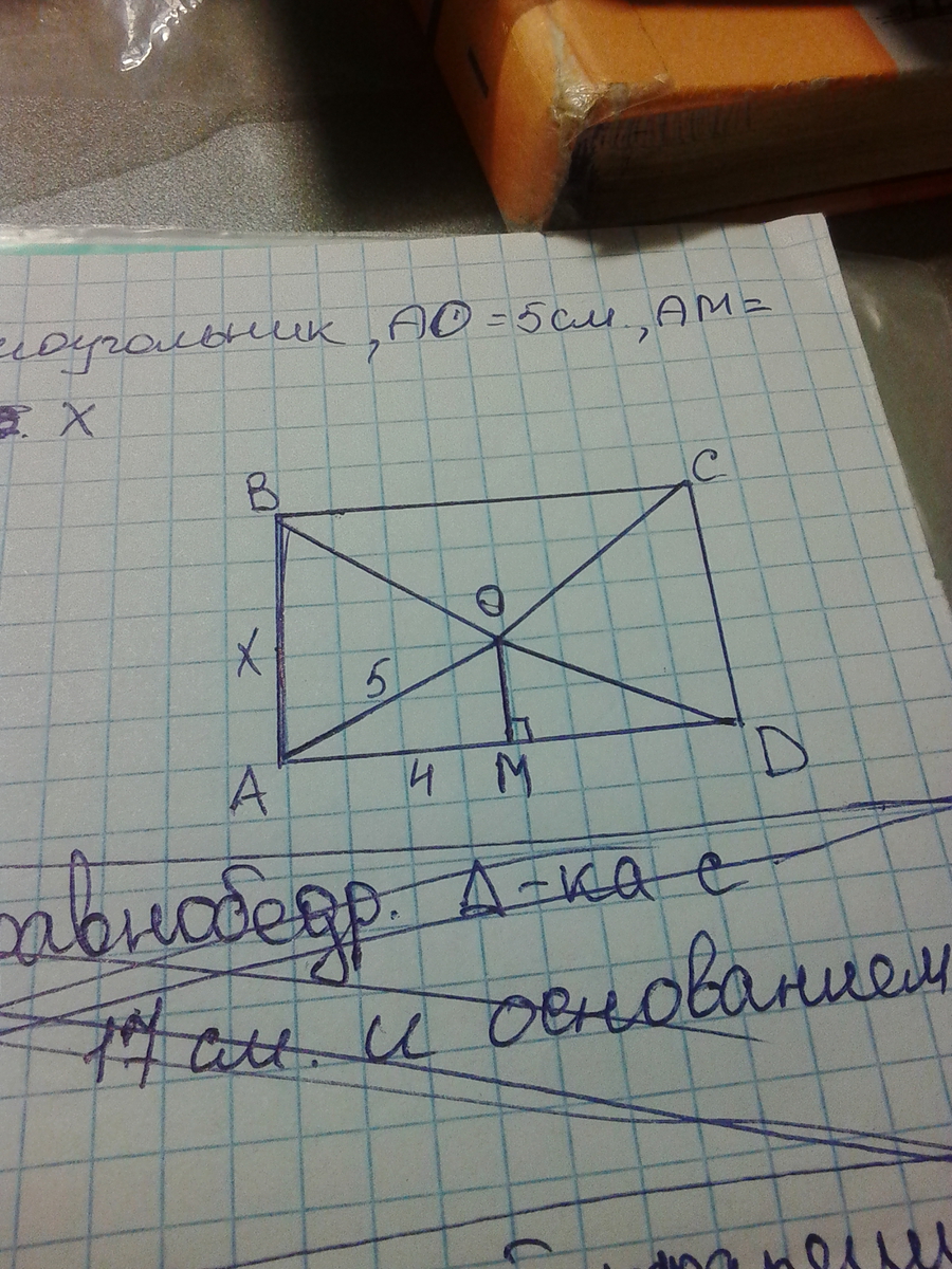 АВСД-прямоугольник,АО-5см,АМ=4см