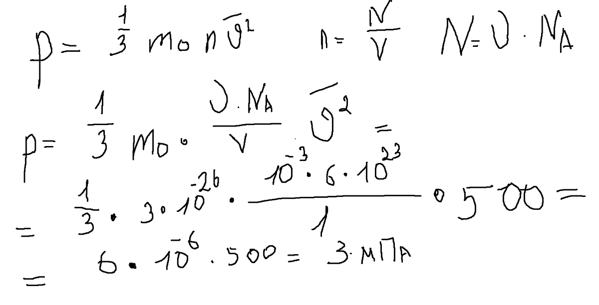 сосуд имеющий форму куба со стороной 1м содержит идеальный газ в количестве 10^-3 моль . Найдите давление газа ,если масса одной молеку 3*10^-23г и средняя скорость теплового движения молекул 500м/с .