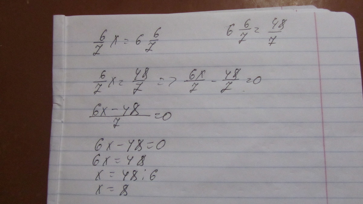 7 сокращается, получается 48 делить на 6 , т.е 8