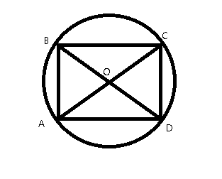 Как известно, центром такой окружности должна быть точка, равноудалённая от всех вершин четырёхугольника. По свойствам диагоналей прямоугольника: АО=ОД=ВО=СО, всё верно, половина диагонали - это радиус окружности.