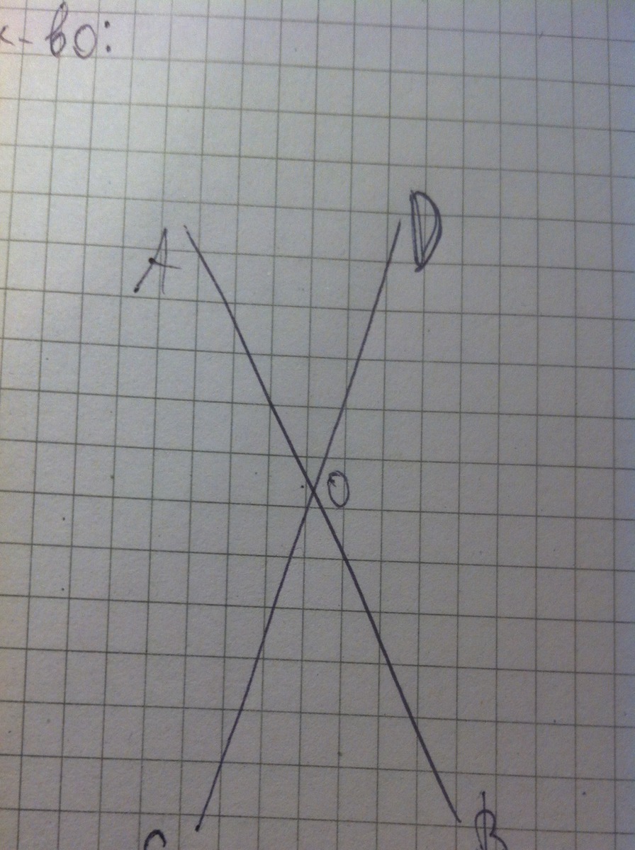 Если при точке O прямой AB(рисунок 28) построим по разные стороны от AB равные углы AOD и BOC, то стороны их OD и OC составляют одну прямую
