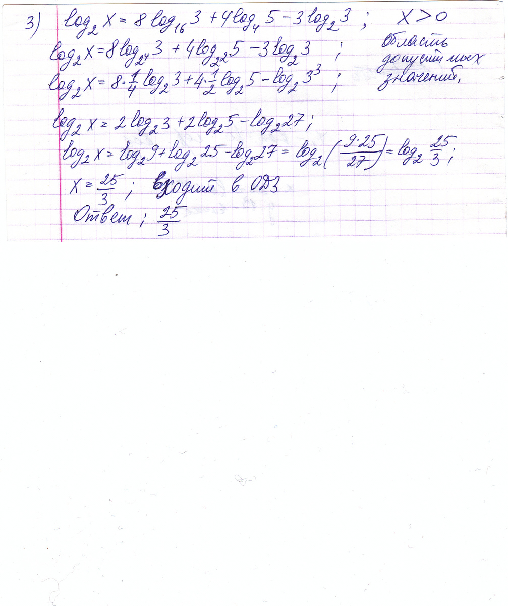 3. Найти х , если log2(x) = 8log16(3) + 4log4(5) – 3log2(3)