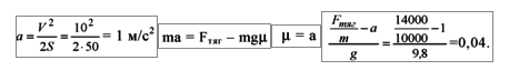 5. Троллейбус массой 10 т. трогаясь с места, проходит 50 м со скоростью 10 м/с. Найти коэффициент сопротивления, если сила тяги равна 14 кН.