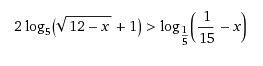 log(5)(√(12-x)+1)²>-log1/(15-x)