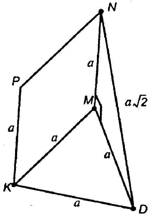 Плоскости правильного треугольника KDM и квадрата KMNP взаимно перпендикулярны. Найдите DN, если KM=a