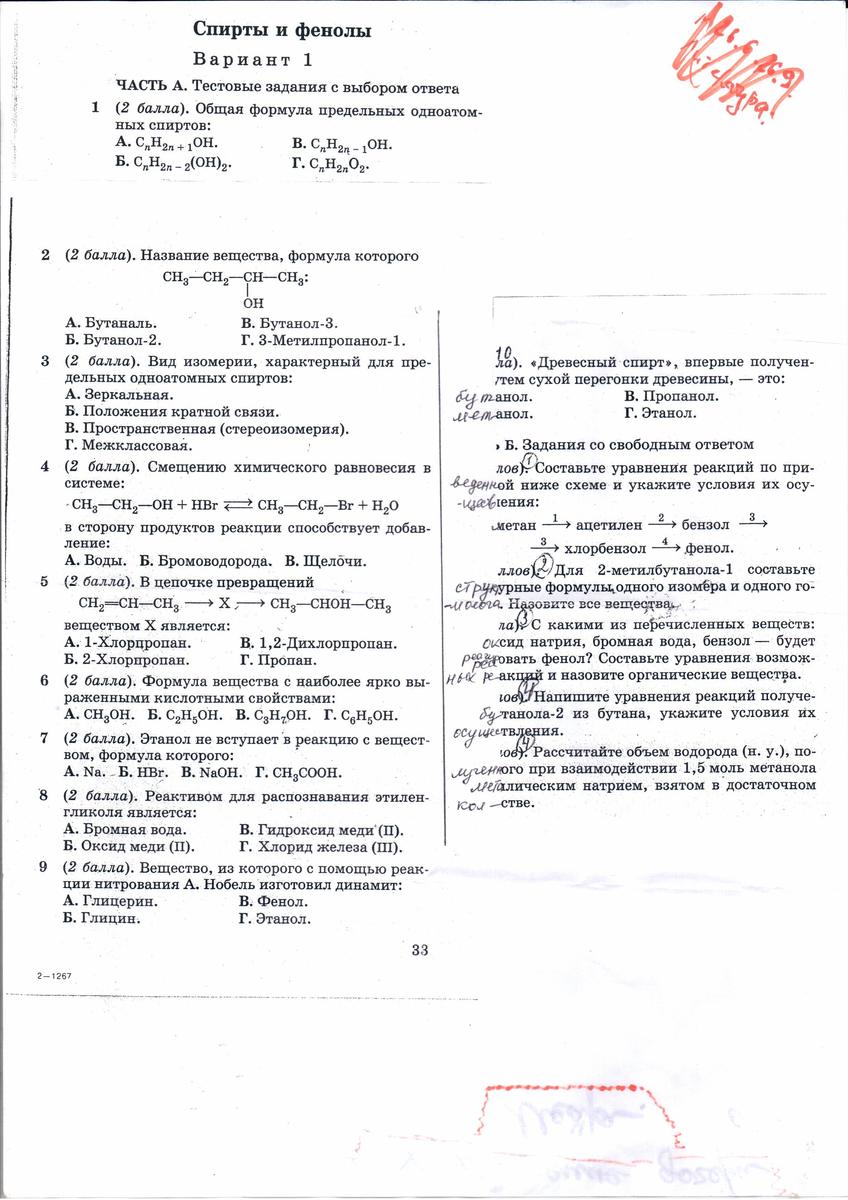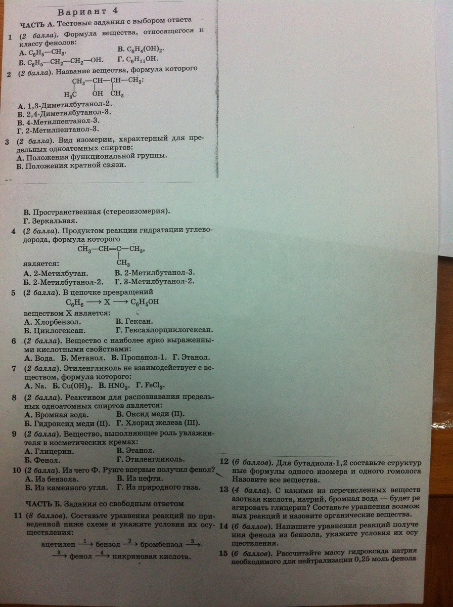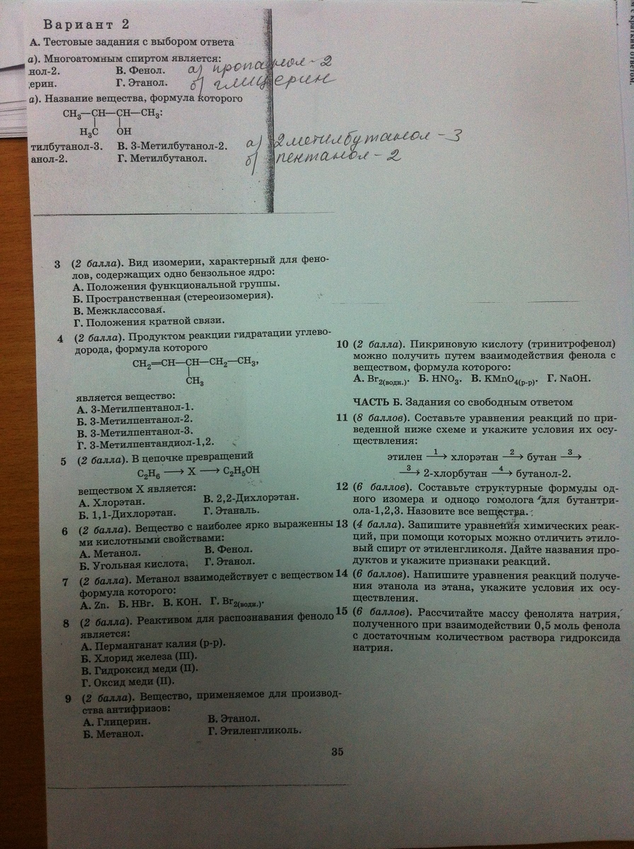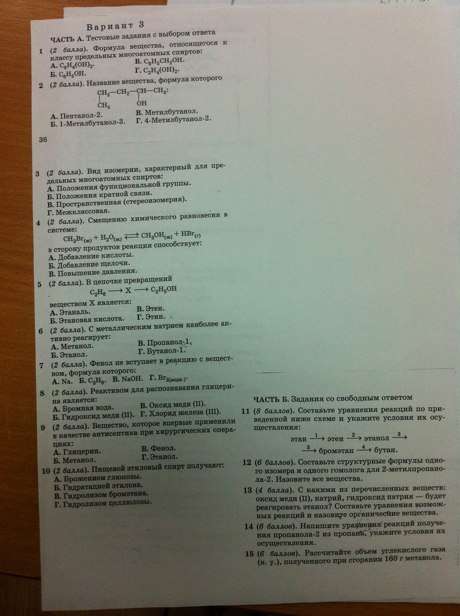 1-а, 2-б, 3-г, 4-б, 5-б, 6-г,7-в,8-в,9-а, 10 -метанол