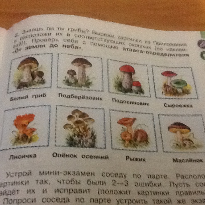 Знаешь ли ты грибы Вырежи картинку из приложения расположение соответствующих окошком не наклеивать проверь себя с помощью атласа-определителя от земли до неба
