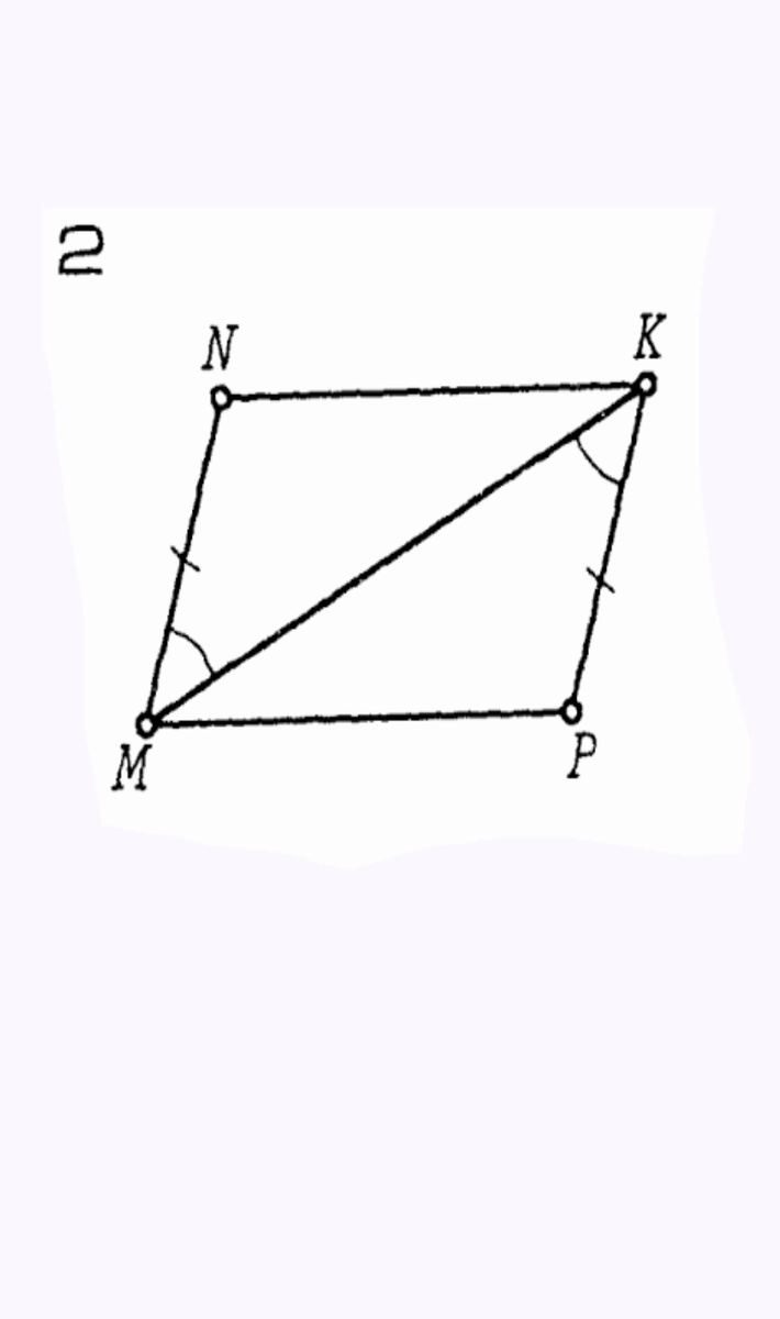 если 2 стороны и угол между одного треугольника соответственно равны двум сторонам и углу между ними ,то эти треугольники равны. mk -общая,mn=pk,угол nmk= углу mkp .сл.но треугольник мнк=мкр по 1му признаку