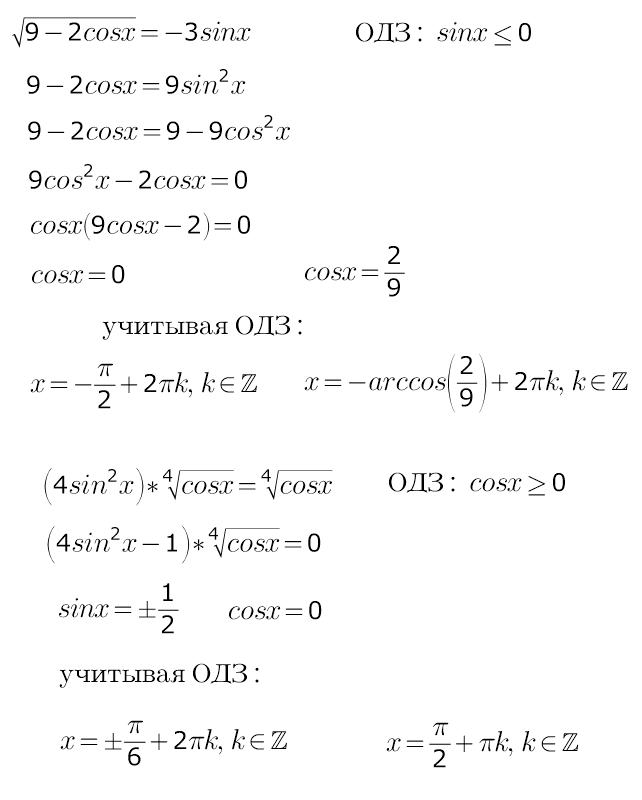 3) (4sin^2(x)) * sqrt^4(cos(x)) = sqrt^4(cos(x))