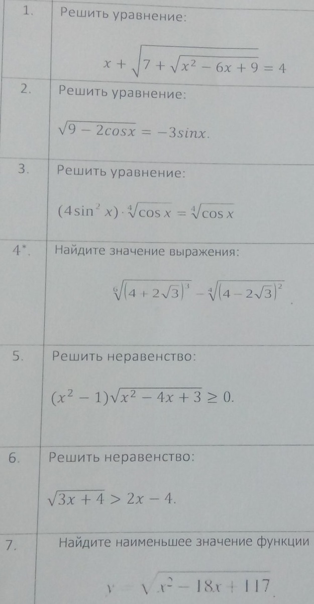 7) у =√(x² -18x +117) = √( 36 +(x -9)² ) ⇒miny =√36=6 ,если x=9 .