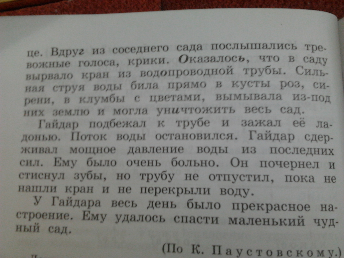 вдруг из соседнего сада послышались громкие голоса и крики.оказалос то там вырволо кран.сильная струя струилась прямо в цветы и в кусты и вымывала землю и весь сад бы богибнут