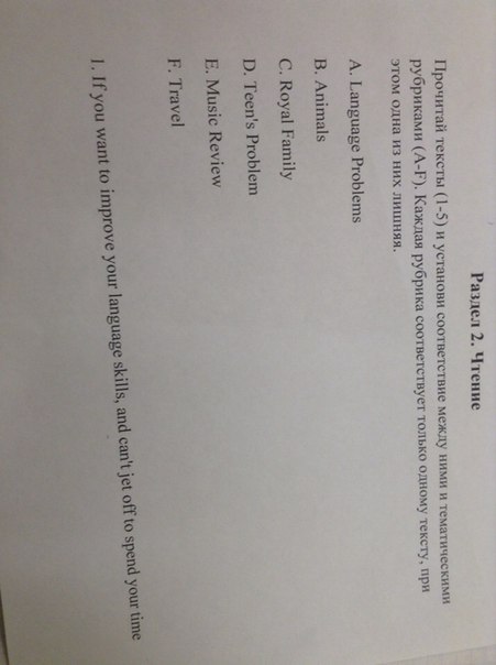 1. Language Problems.2. Music Review 3. Animals.4. Royal family.5. Teen's problems.