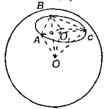 Проведем OO1 перпендикулярно плоскости ΔАВС. Тогда прямоугольные треугольники АO1O, BO1O, СО1О равны по катету и гипотенузе (так как AO=BO=CO — радиус шара и ОО1— общий катет). Так что О1—центр окружности, описанной около треугольника АВС (О1А=О1В=О1С).
