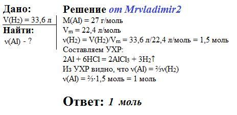 n(h2)= v/vm = 33.6 / 22.4 = 1.5 моль