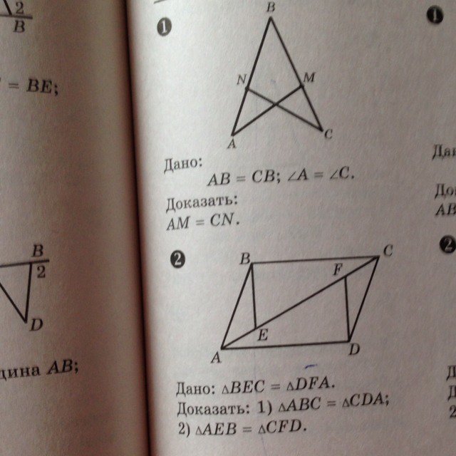 2) тр АЕВ = тр CFD по двум сторонам и углу между ними, так как в них