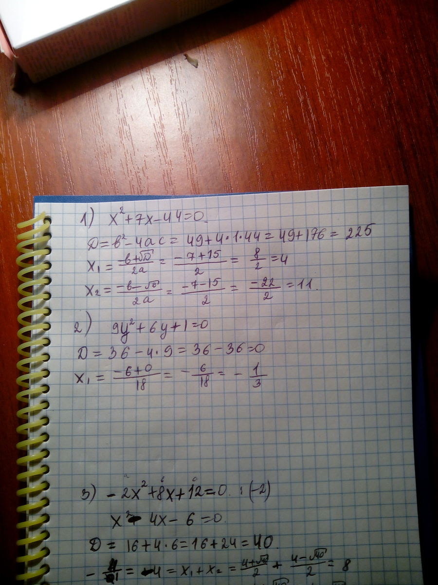 1) хв2+7х-44=0 помогите решить уравнение
