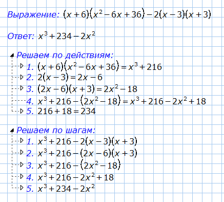 1. x^3+216-2*(x-3)*(x+3)