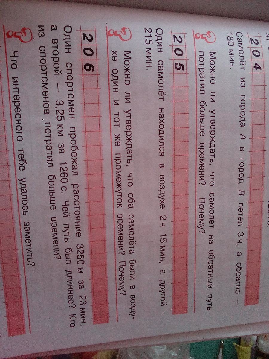 1)215:60=3часа 35 мин. Нет, нельзя утверждать тк 2ч*60 мин+15мин=135 мин летел другой самолет это меньше чем 215 мин летел второй самолёт, у них разный промежуток времени