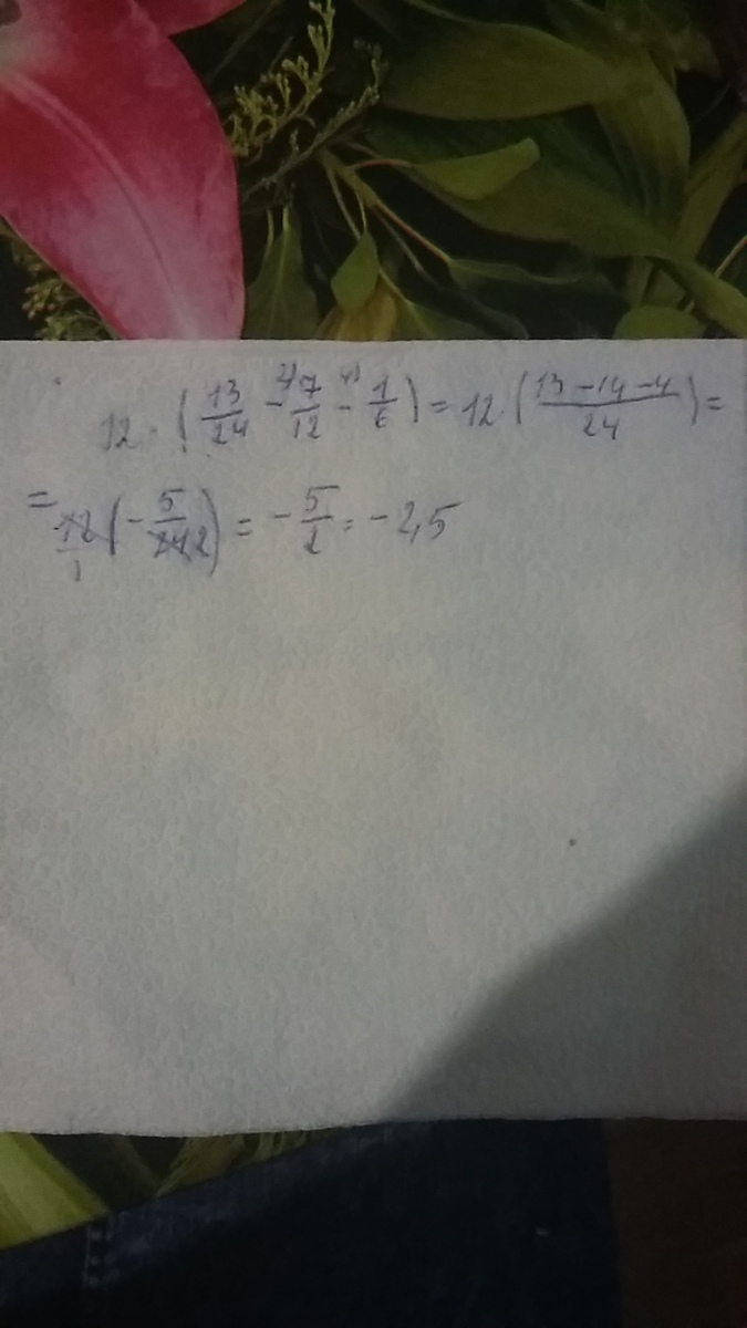 12*(13/24-7/12-1/6)=12*(13-14-4/24)=12 (-5/24)=-60/24=-2,5