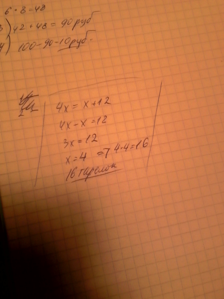 решить задачу В буфете тарелок было в 4 раза больше чем на столе когда на стол поставили 12 новых тарелок в буфете и на столе тарелок стало поровну Сколько тарелок было в буфете закончи схематический чертеж и реши задачу