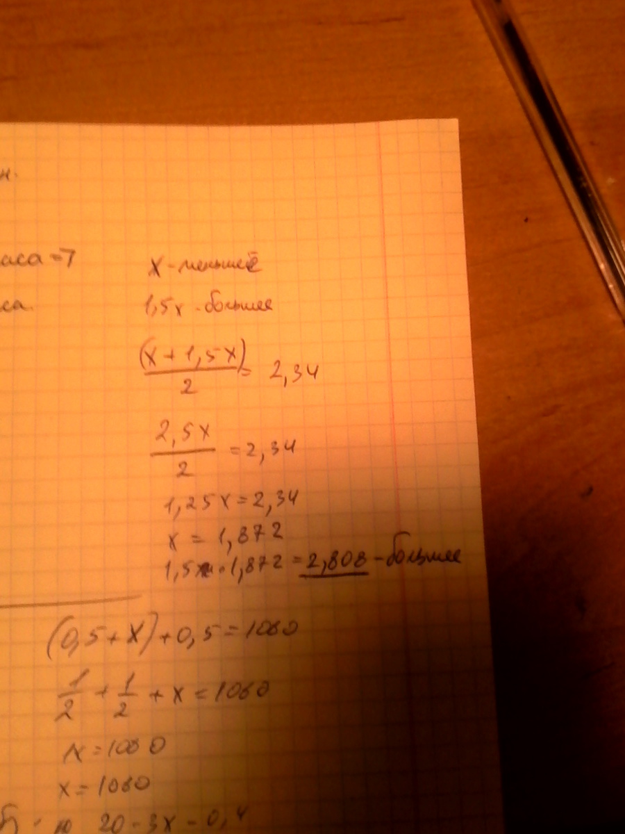 Среднее арифметическое двух чисел равно 2,34. Одно число в 1,5 раза меньше другого. Найдите большое число.